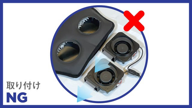 注意:ファンの吹き出し口が上むきになるように取り付けてください。