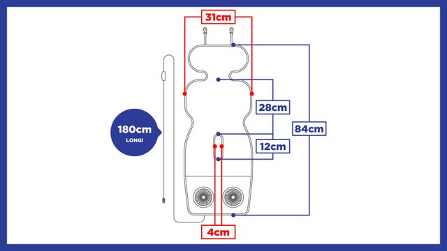 私が開発したOXA BABYのクーラーファンシートは太ももから頭部まで一体型となっているため、お尻から後頭部まで背面全体に風が行き渡ります。また足元にファンがある構造上、従来品は頭部の風が弱くなってしまうのですが、2つのファンによりしっかり頭部まで風を送り込みます。