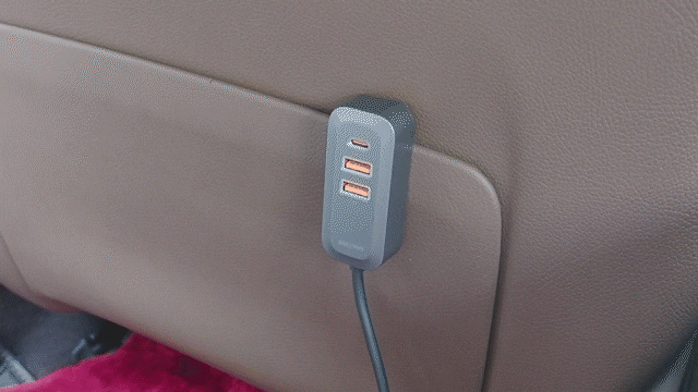 後部座席にぱっと届けるロングケーブルのおかげで、運転手はもちろん、同乗者も充電が楽々!