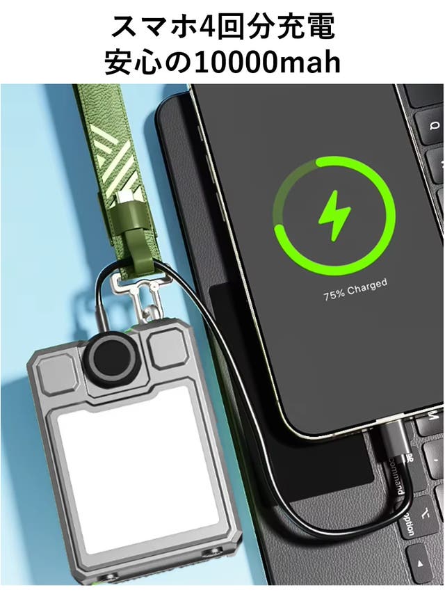 - 10000mAhバッテリー搭載!スマホを4回フル充電できるから、停電時も情報収集に困らない