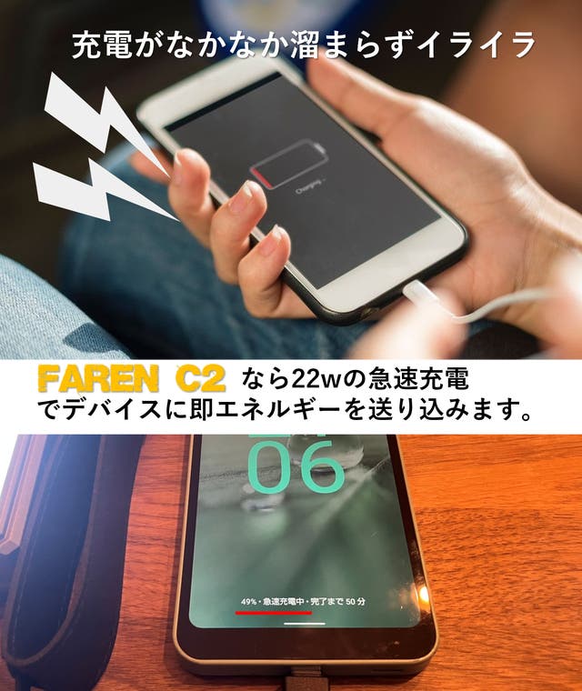 モバイルバッテリー「FAREN C2」 ×2 [一般販売予定価格 15600円の38%OFF] ※送料、税込み <付属品> 本体×2 ケーブルバンド×2