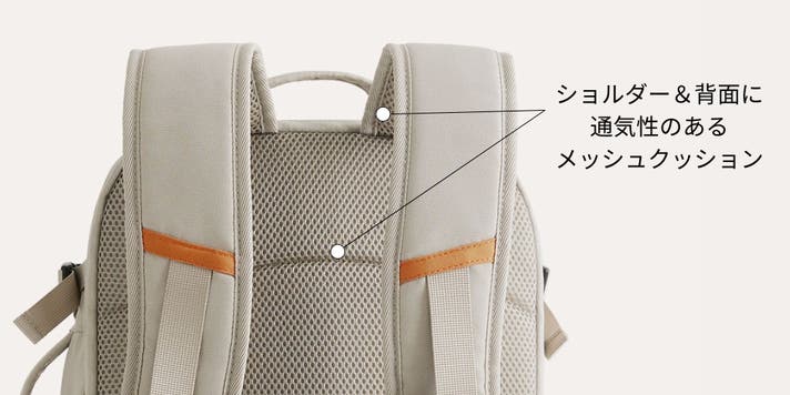 荷物が多いときでも肩への負担を軽減し、背中でしっかりホールド。長時間の移動や旅でも快適さが続きます。
