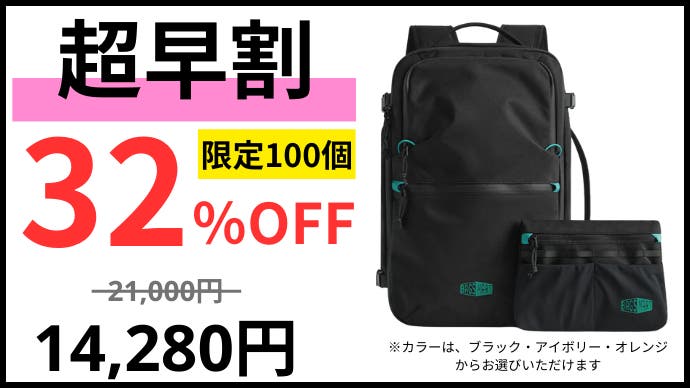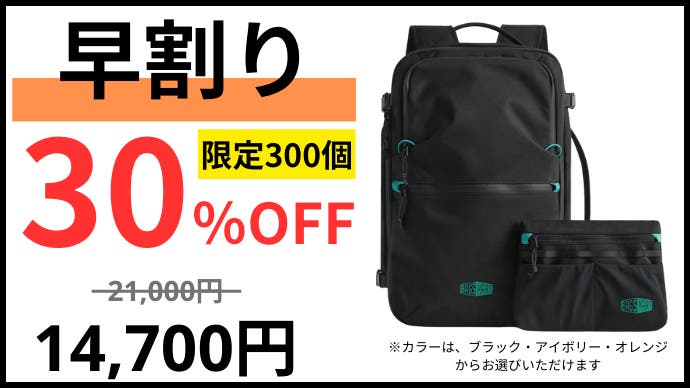 【早割】30%OFF (先着300名)トラベルバックパック+ミニバッグ×1組
