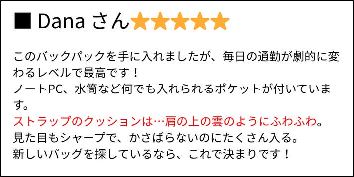 「ストラップのクッション?肩に雲が乗っているみたいでした。」