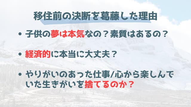 - 子供の夢のために移住した実行者の葛藤や経験を基にした独自のノウハウ