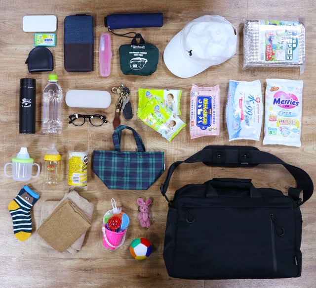 ママが「ファザーズバッグ」に必要なものを全て準備してくれていたので、二人だけのお出かけでも心配なし!