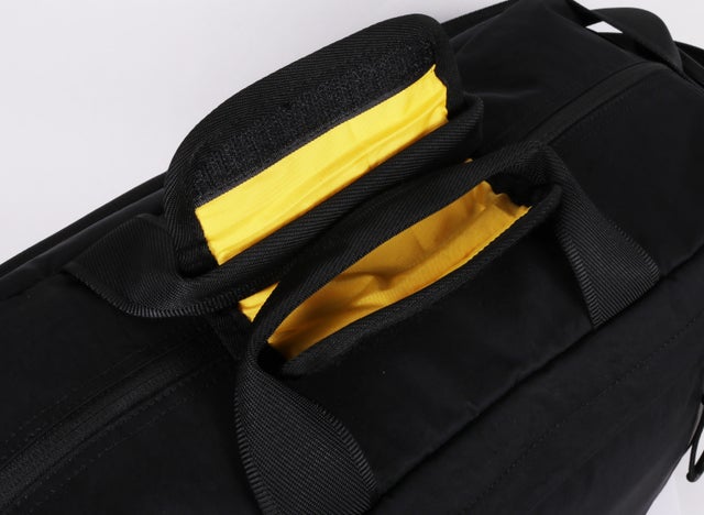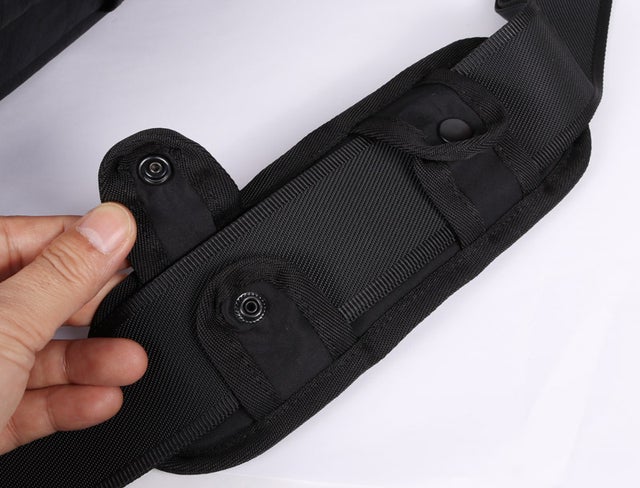 ↓重量感に耐えられるクッション性がある肩パットは取り外し可能。