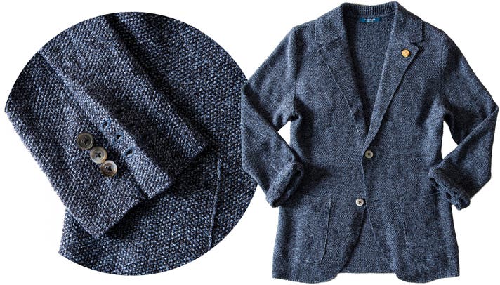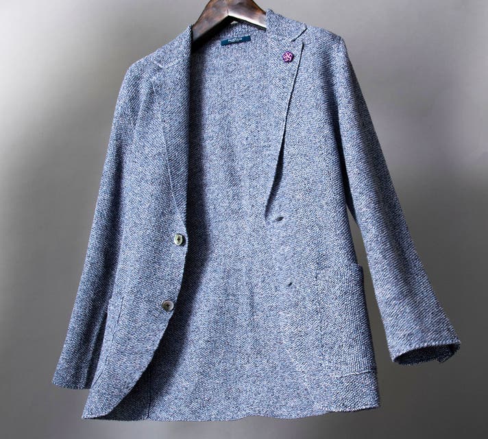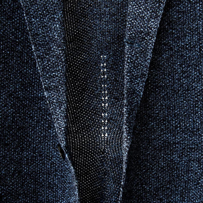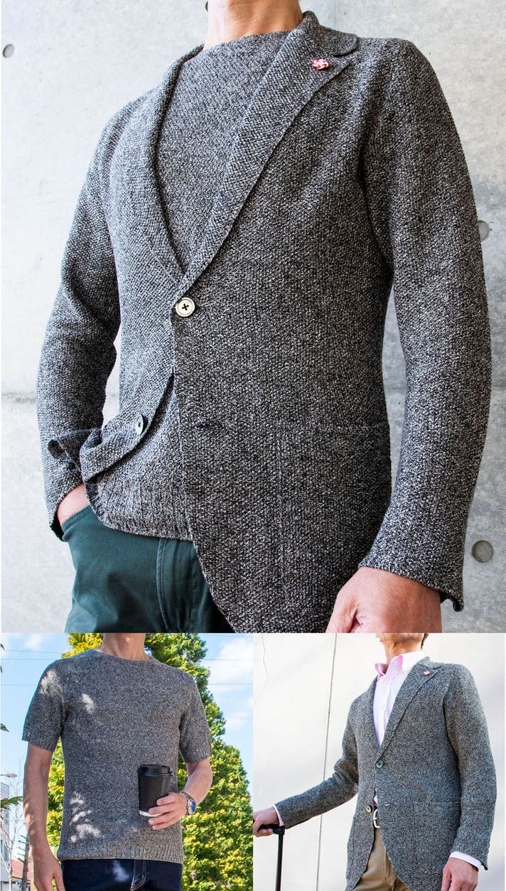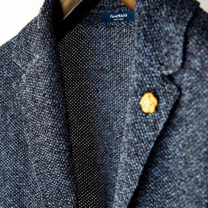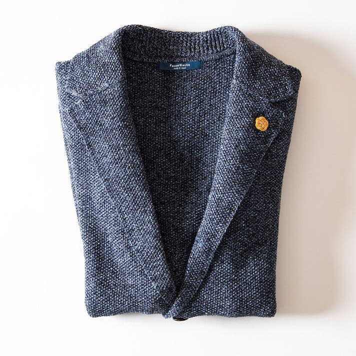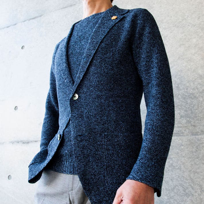 FavorKnits(フェイバニッツ)は、一般的な織物のジャケットと違い、裏地、芯地、見返しを一切使用しない、完全一枚仕立て。