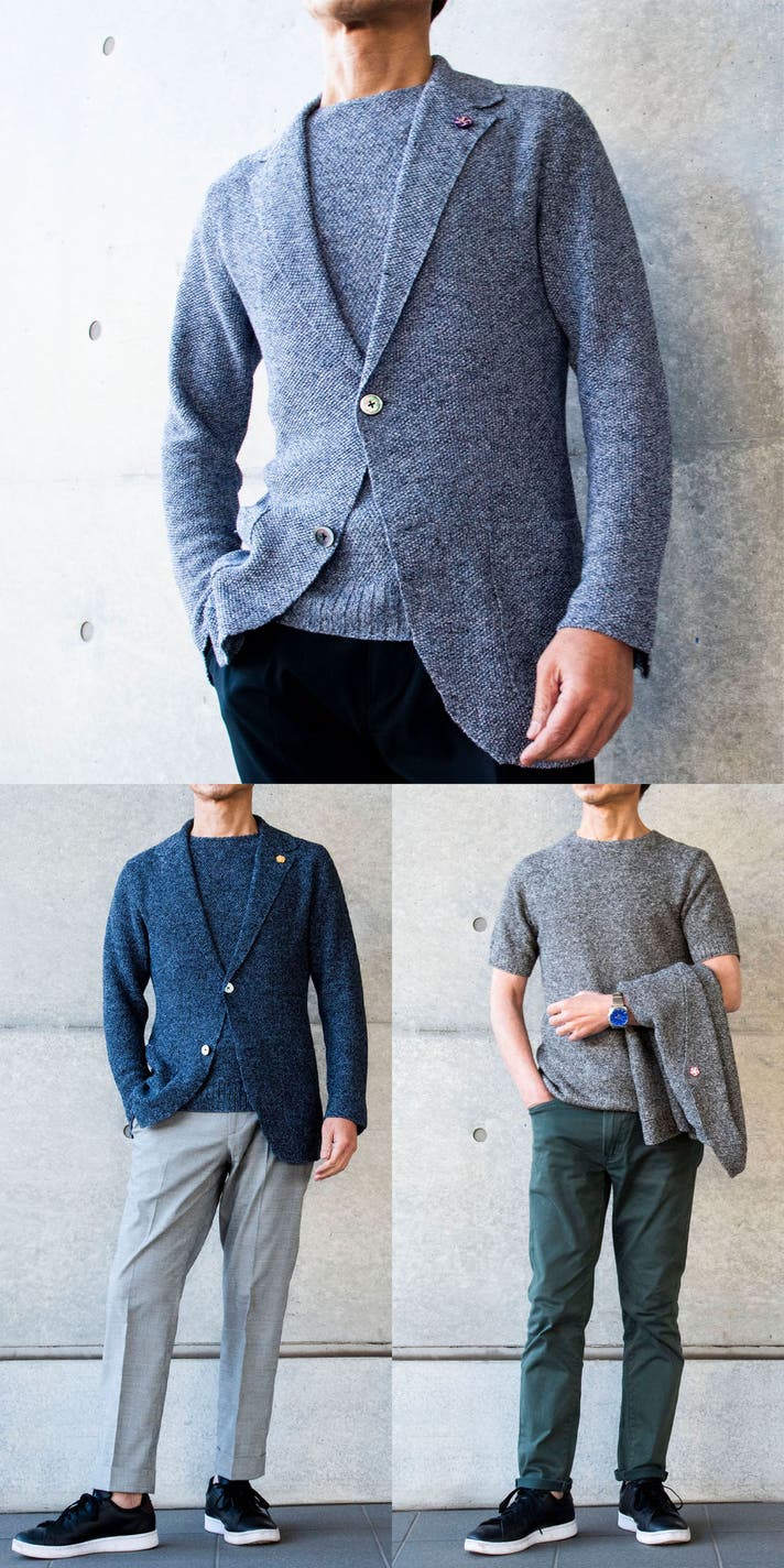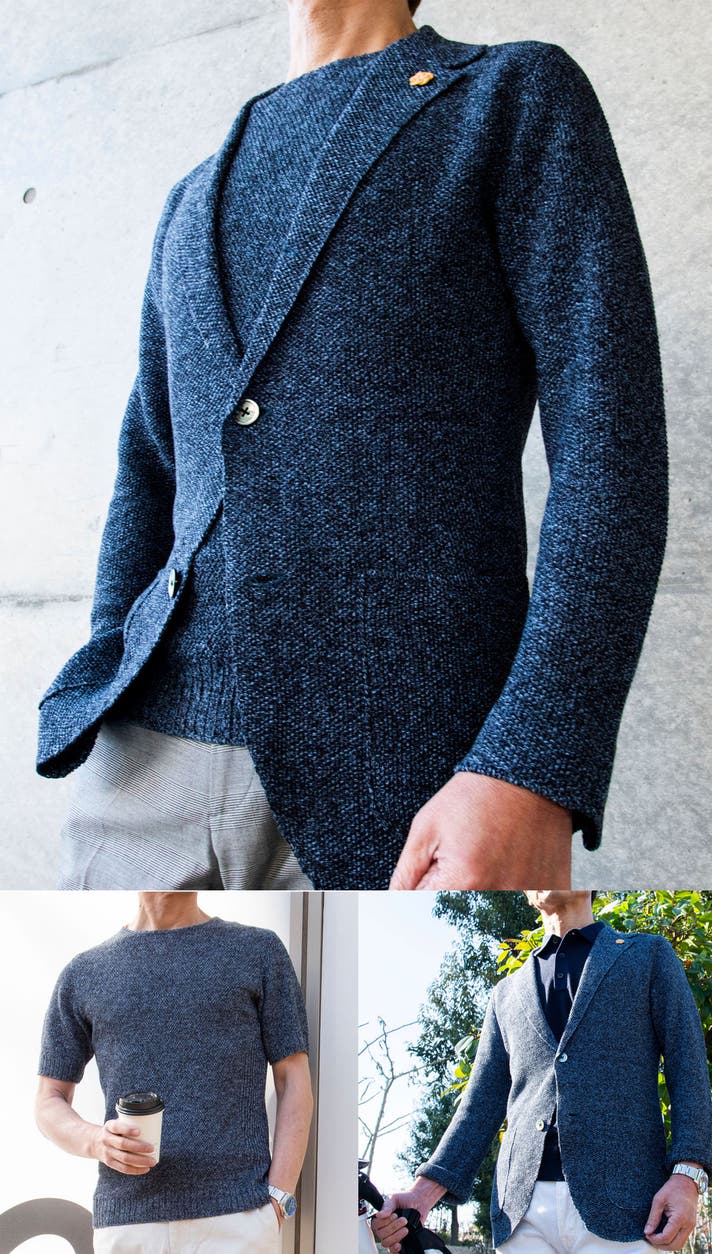 - 夏の快適素材『麻』の欠点を克服。シワにならない『麻100%』メンズニットジャケット 第3弾!
