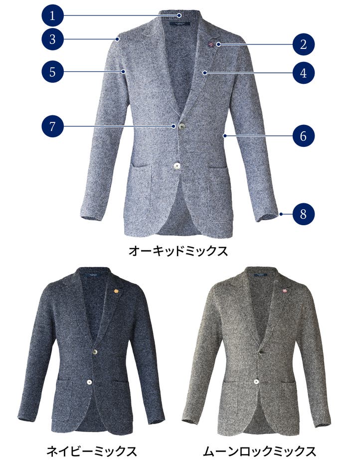※ジャケットのカラーは「オーキッドミックス」「ネイビーミックス」「ムーンロックミックス」からどれかをお選びください。