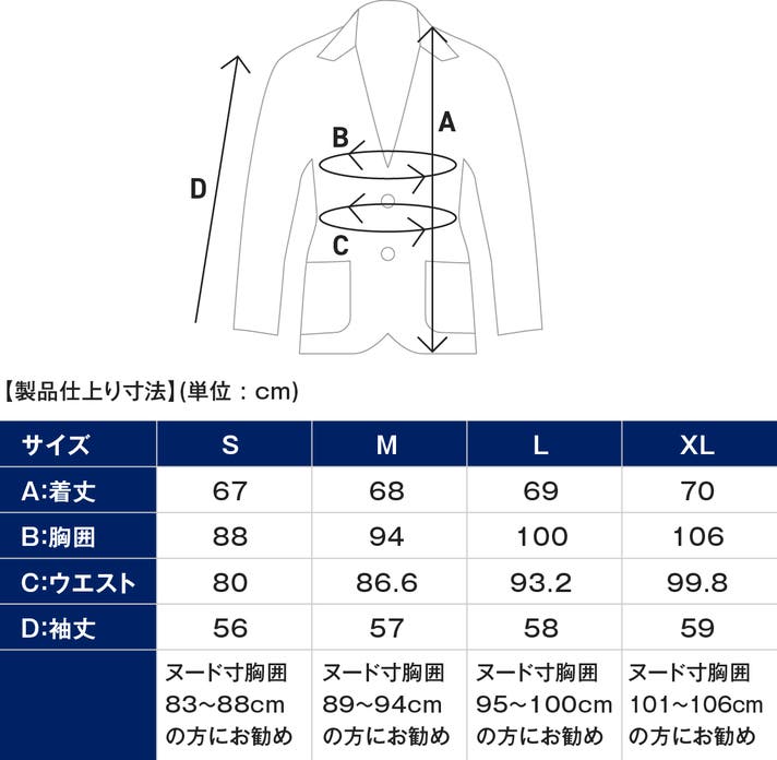 ※ジャケットのサイズは、S、M、L、XL からどれかをお選びください。