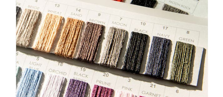 紡績会社のカラーカード。この中から3色の組合せをピックアップします。