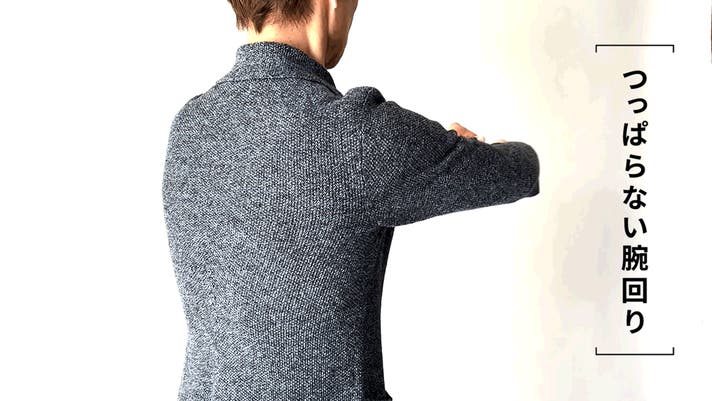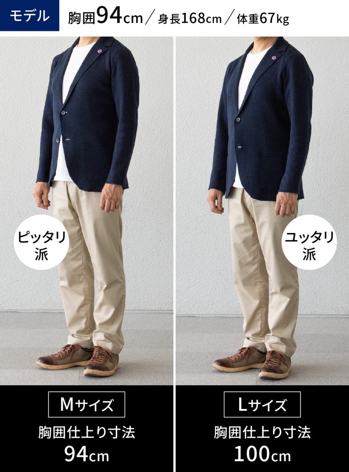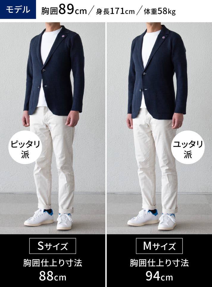 ニットジャケットと呼ばれるほとんどの商品は、ニット地の反物を裁断、縫製してつくられるタイプです。生地は伸びますが、簡易的な縫製手法をとることが多く、見た目がカジュアルすぎたり、縫い目がごわつき着心地が良くないことも多々あります。