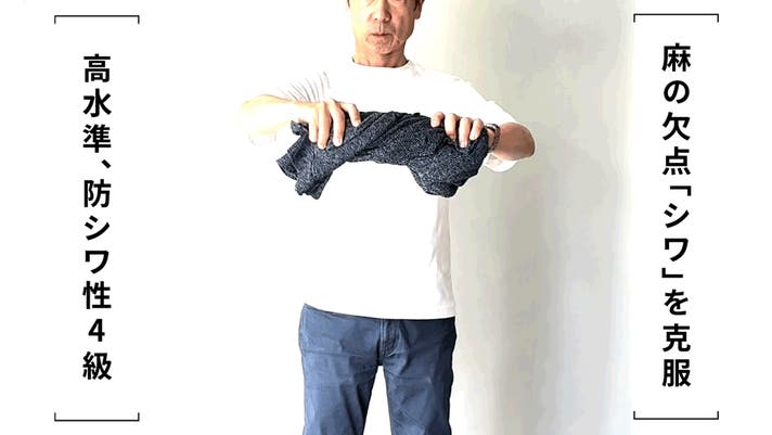 夏の快適素材である「麻」には、常に「シワ」という大きな弱点が有ります。
