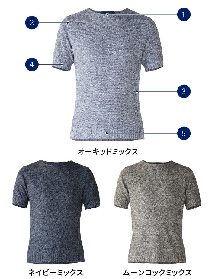 ニットジャケット、プルオーバーは「オーキッドミックス」「ネイビーミックス」「ムーンロックミックス」の3色展開。