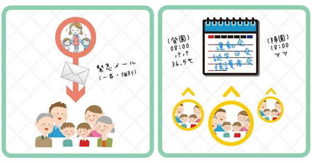 ※保護者側は任意に追加できます。保育園からの連絡事項が全保護者に伝わるため、これまで以上に父親の育児参加を期待できます。