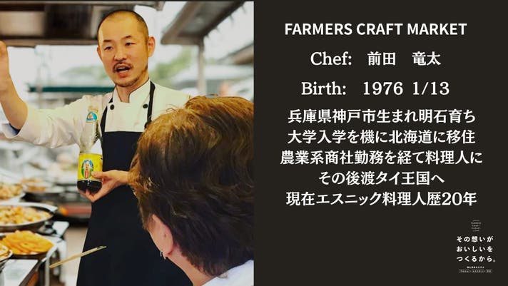 私はファーマーズクラフトマーケットのシェフを務めます前田竜太です。