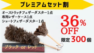 【プレミアムセット割】オーストリッチフェザーダスター、レザーケース、ショート×1