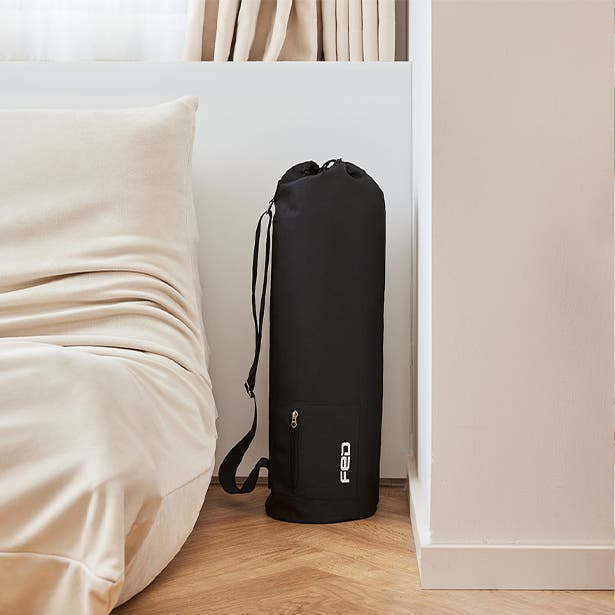 FEB-HXBの収納バッグは持ち運びに便利なショルダー付きです。くるくると丸めて、どこにでも携帯できます。
