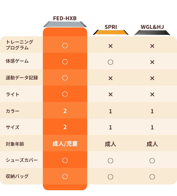 FED-HXBは、1台で様々なフィットネス器材の代わりになります。ランニングマシン、フラフープ、スライドディスクなど、目的に合わせてあれこれ購入する必要はもうありません。