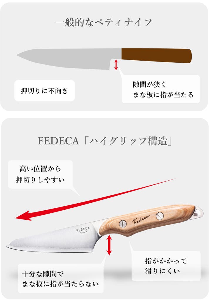 FEDECAのナイフは、刃からハンドル、ネジに至るまですべて兵庫・三木の自社工場で製造。そのため、修理や部品供給といったきめ細やかなサポート体制も整っています。