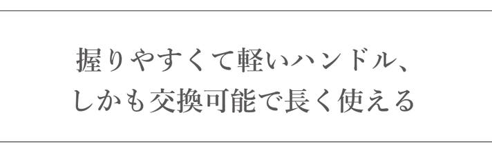 しかもハンドルは交換可能なので、長く使って傷んできても、新しいものに付け替えて、また気持ちよく使い続けられる設計です。
