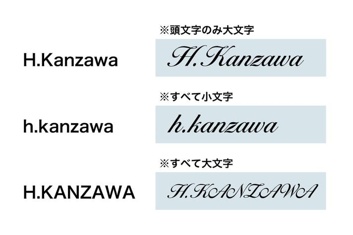 ※ご指定がない場合は、頭文字のみ大文字・以降は小文字で刻印いたします。