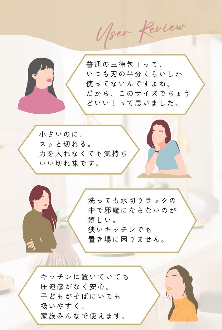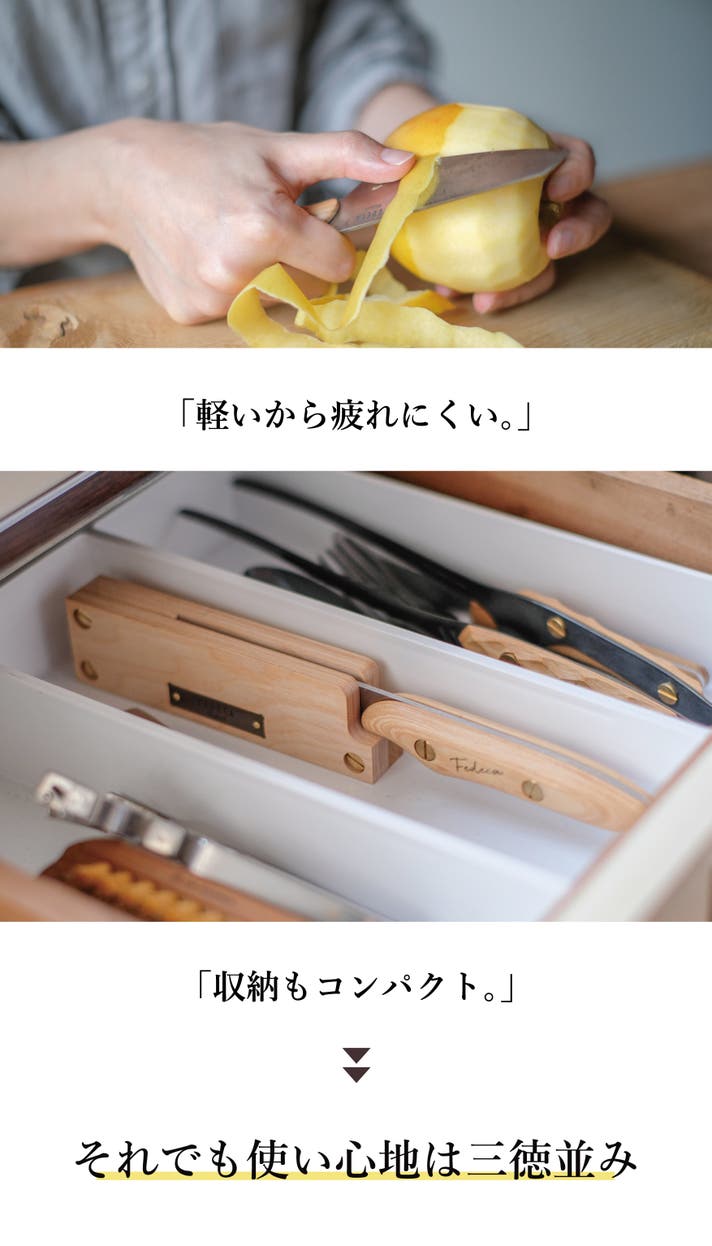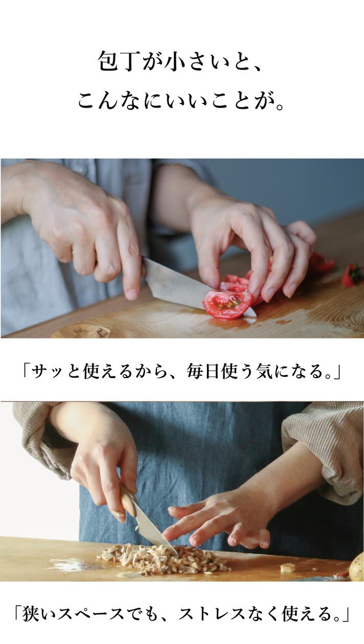 - 「大きな包丁じゃなくても十分。」現代の小さな調理に、ぴったり寄り添う手のひらサイズ