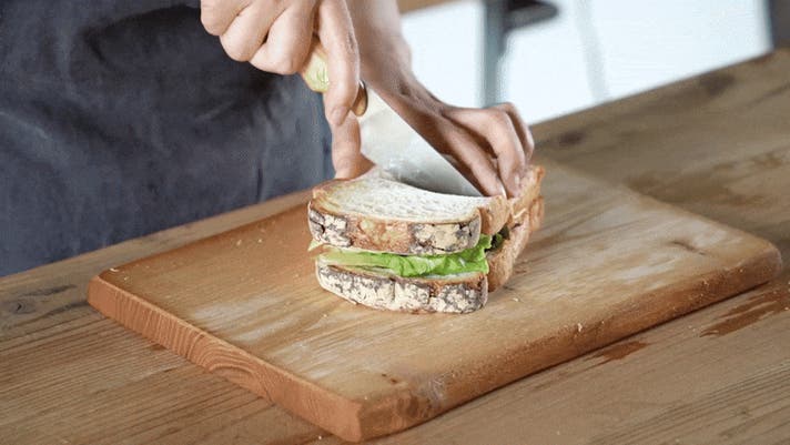 やわらかいサンドイッチも切り口を崩さずきれいに切れます。