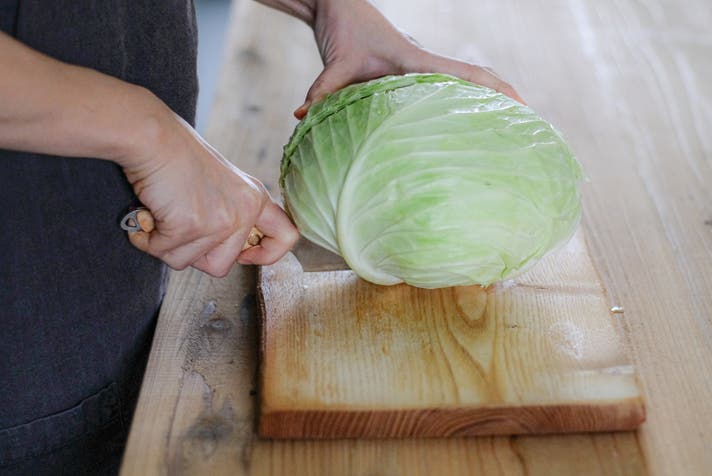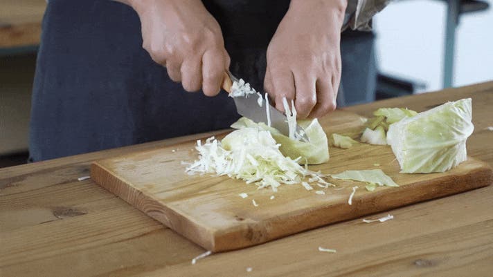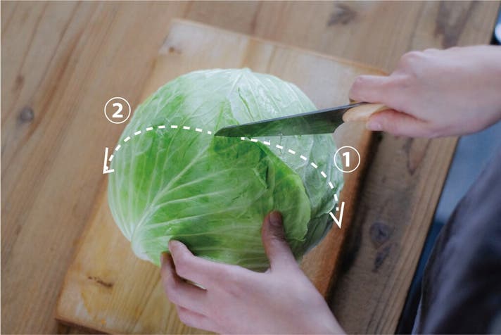 なお、キャベツやスイカなど、直径の大きな食材を丸ごと切るときは、一度で無理に切ろうとせず、写真のように複数回に分けて切るのがおすすめです。