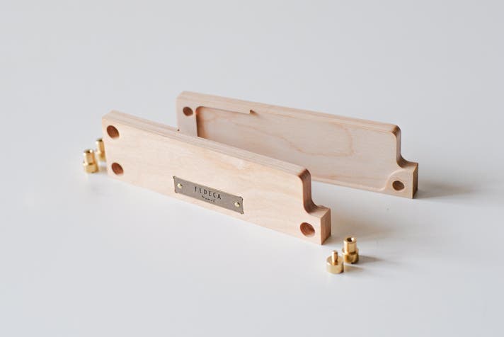 オプションとして追加購入できる積層強化木製の包丁ケース。