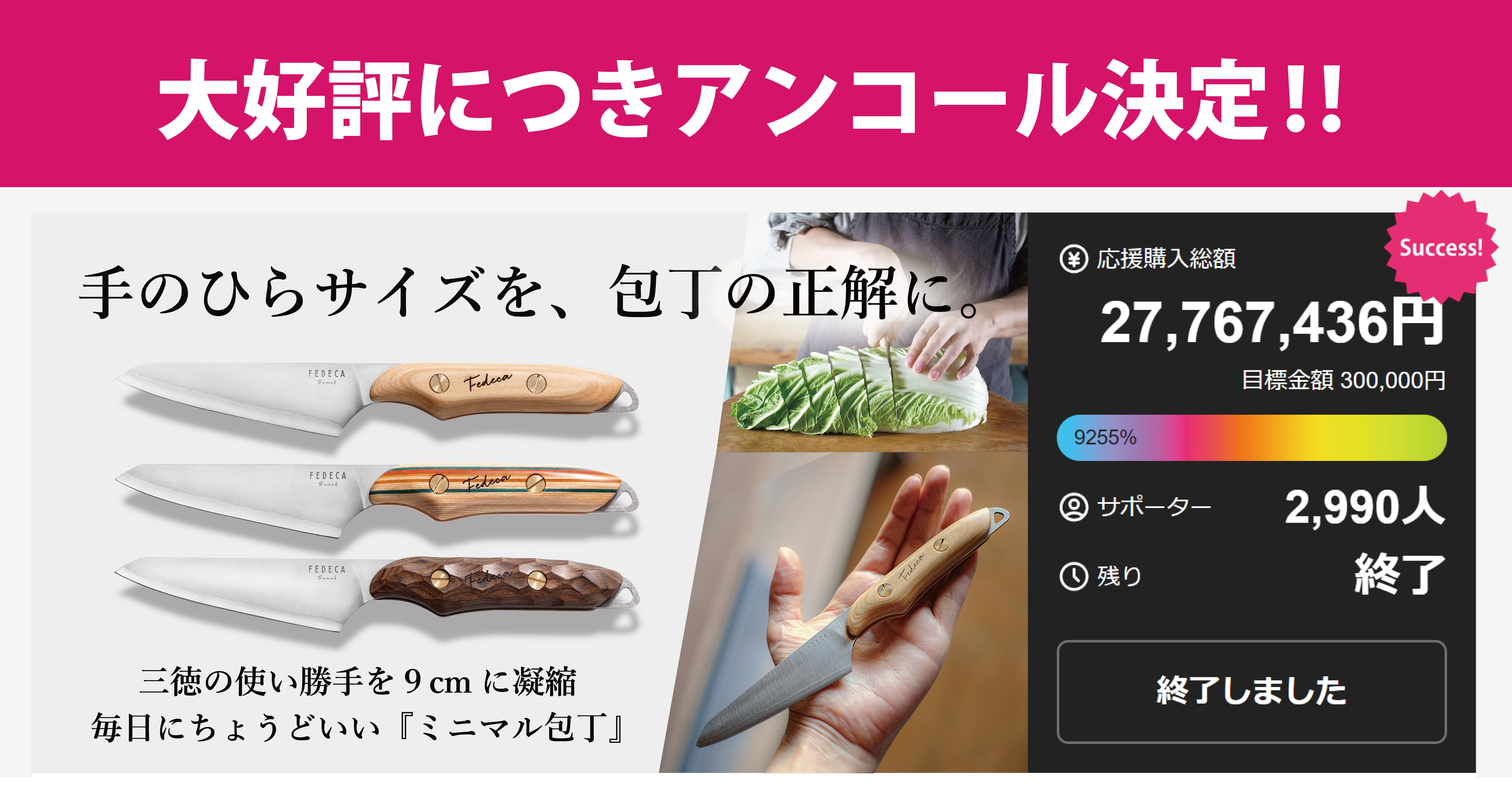 「Makuake(マクアケ)」は、実行者の想いを応援購入によって実現するアタラシイものやサービスのプラットフォームです。このページは、 プロダクトカテゴリの 「【アンコール】手のひらに収まる主役包丁。肉も野菜も軽快かつパワフルに。」プロジェクト詳細ページです。