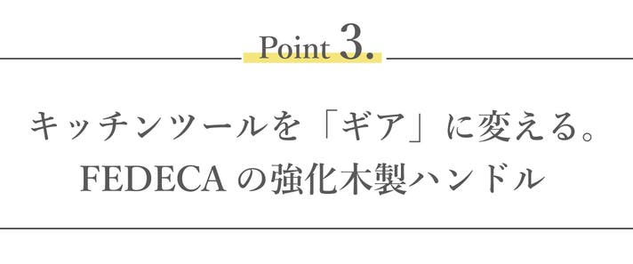 手と道具の隙間が小さくなることで、あたかも手のひらが拡張されたかのような一体感が生まれ、重い食材でもグラつくことなく、直感的にコントロールできます。