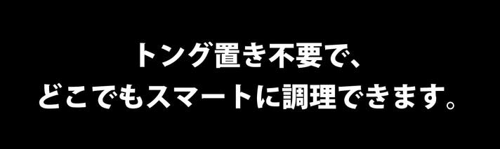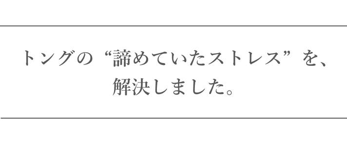 ハンドルの「突起(スタンド)」により、置くだけで先端が自然と浮き上がります。 トング置きは不要。