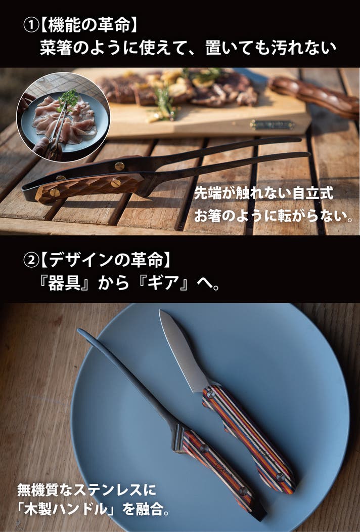 そこには、「キッチンとフィールド、そして道具同士の境界線をなくしたい」という想いを込めました。このトングを使っているうちに、「この手触りいいな」「手入れをして育てるって楽しいな」そんな風に感じていただけたなら嬉しいです。