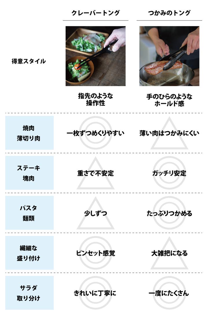 繊細な「クレーバートング」と、豪快な「つかみのトング」。