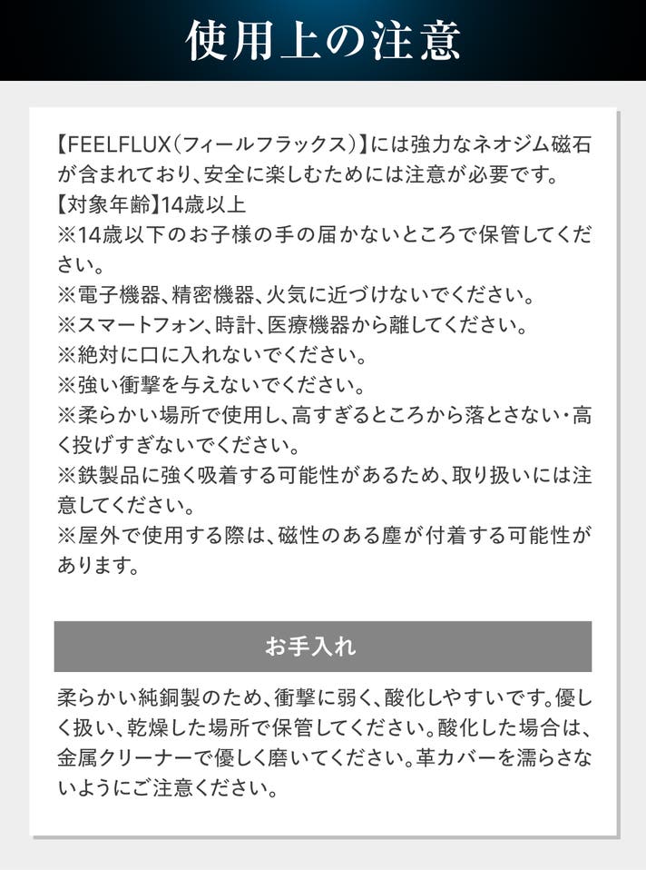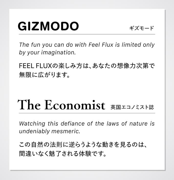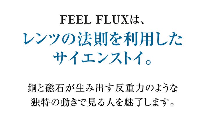 電気も電池も使わない、レンツの法則を知り尽くしたFEEL FLUX (フィールフラックス)だからこその素材と設計で、反重力効果を存分に楽しめます。