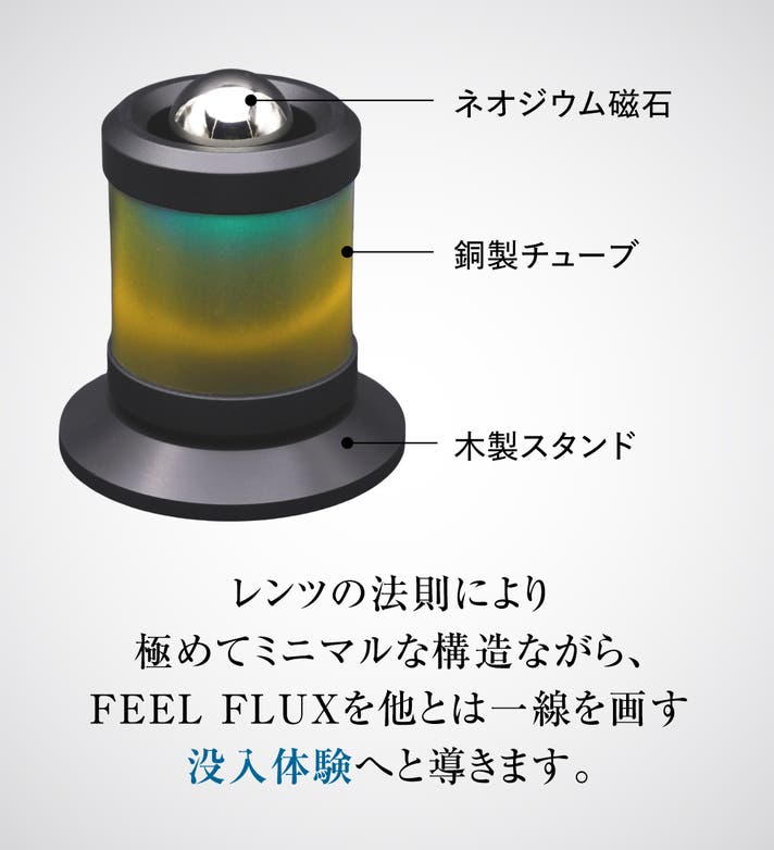 レンツの法則を明確に体感するため、FEEL FLUX (フィールフラックス)は、精密設計と高品質素材によって、理論を体験へと変換しました。