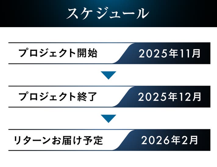 本文中に記載させていただいたスケジュールは、あくまでプロジェクト公開時点の予定です。応援購入の性質上、配送遅延のおそれがございます。