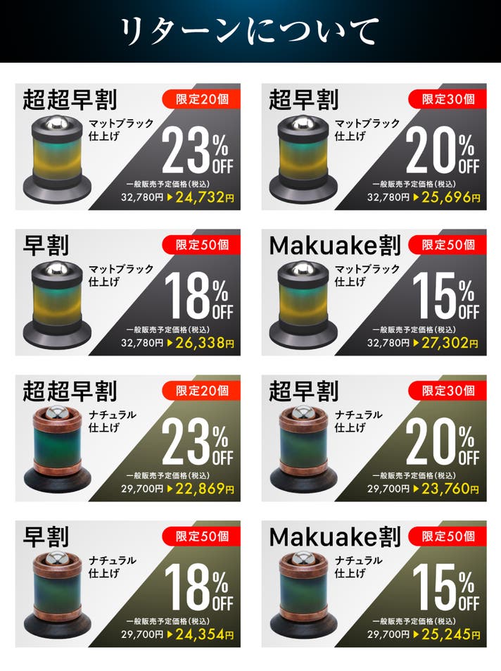 ※皆様の応援購入により量産効率が向上した場合、正規販売価格が販売予定価格より下がる可能性もございます。