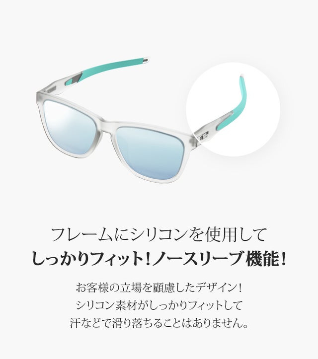 釣り、運転、ゴルフ、日常生活などマルチに活用できるサングラスとして、テンプルにシリコン素材を使用!汗の多い夏場でも滑る落ちることなく、しっかりフィットする着用感で目の疲れも耳の痛みも最小限に抑えてくれるマルチサングラスです。