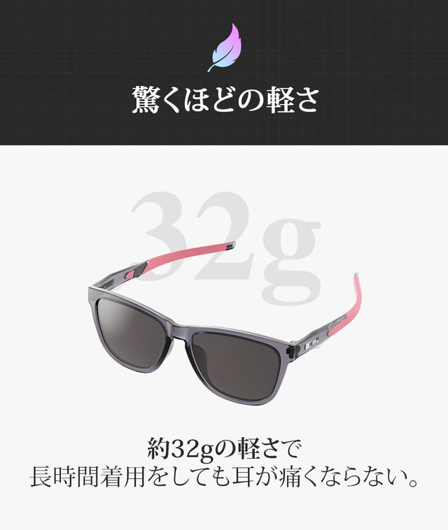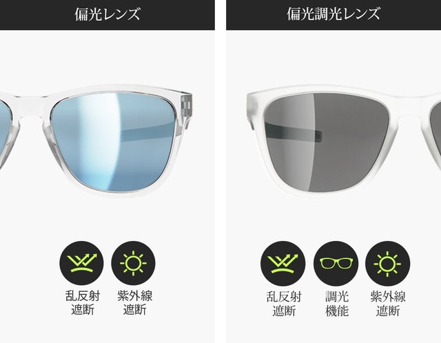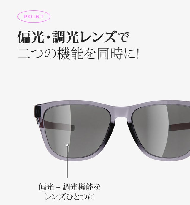 - 選択肢を広げた2タイプの偏光/偏光×調光仕様に99%以上のUVカット機能付きサングラス