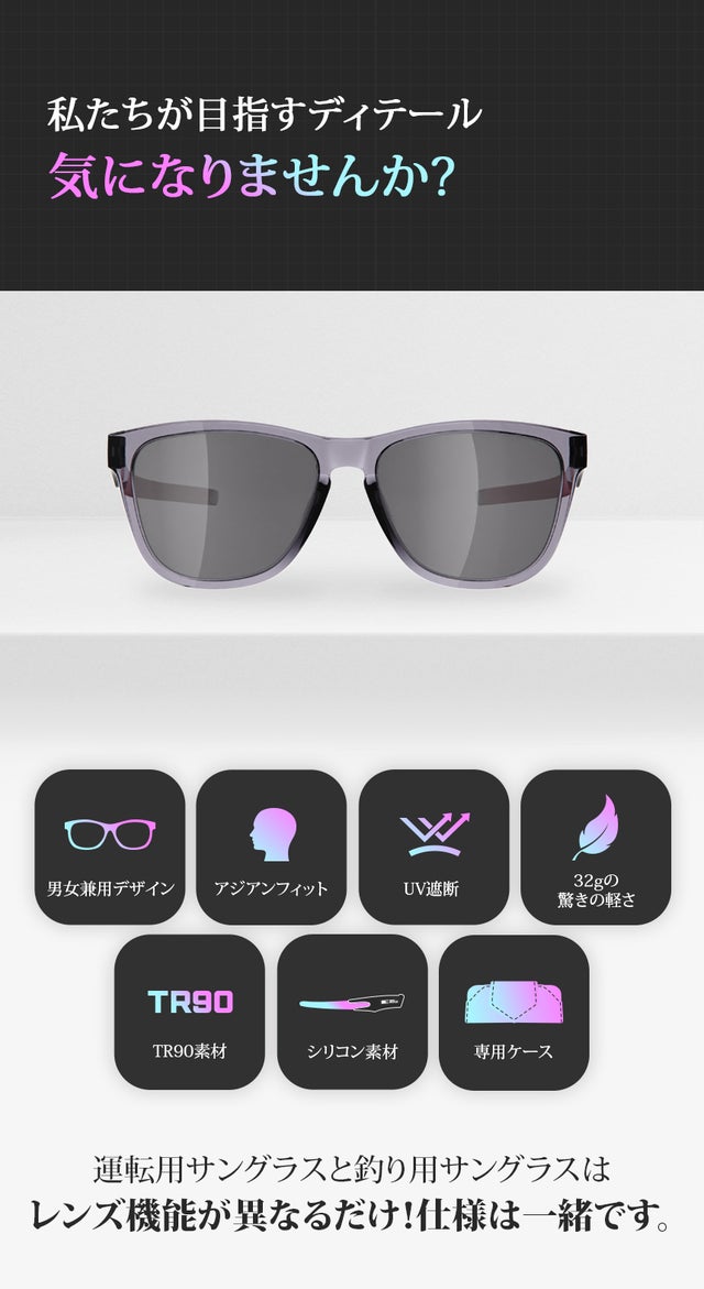 - 釣り、運転、スポーツ、アウトドアから日常まで使えるマルチサングラス