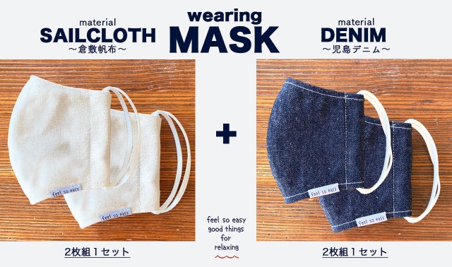 ▼「着るマスク」倉敷帆布素材2枚組1セット+児島デニム素材2枚組1セット(計4枚)