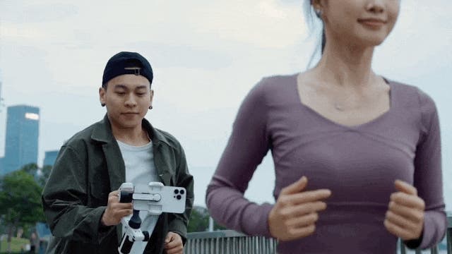 ジンバルをぐるぐると360°回転させながら撮影が可能です。スマホを回して撮影することで、アプリでの動画編集がなくても、そのままスタイリッシュでシネマティックな動画が撮れます。右と左、回転方向の選択もできます。