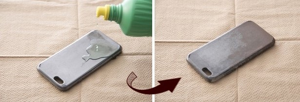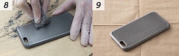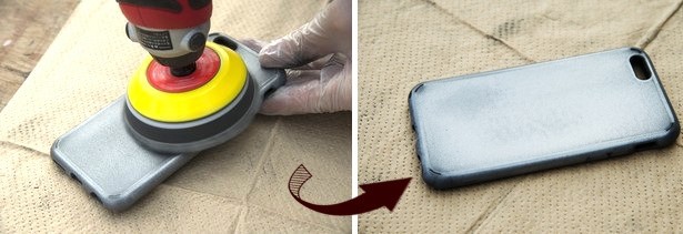 ①紙やすりなどを使ってスマホケースを目あらしをしてから、シリコンオフなどの脱脂剤で油分を取り除いておきましょう。
