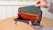 紙幣40枚以上、小銭30個以上と楽々収納。カード8枚、領収書、カギ、スマートタグ、スマホが入ります。