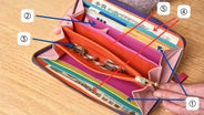 お好きな色をお選びいただけます。今回は、癒し効果の高い紫を使ったお財布をご用意いたしました。