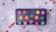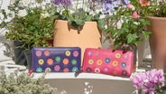 Feliz♥Felizのお財布の特長は何といってもカラフルな色使い。表面にあしらわれたかわいらしいガーベラの花柄のお財布。財布を開けると…見ている人が心躍るような色使いにこだわりを持って作りました。
