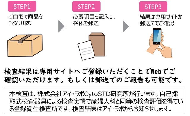 フェムシアの郵送検査は、株式会社アイラボCytoSTD研究所が行います。アイラボは、臨床検査の中でも主に子宮頸がんと感染症の細胞診検査と性感染症に関連した遺伝子検査をしている登録衛生検査所で、産婦人科からの子宮頸がんや性感染症の検査の依頼の他、クリニックや検診センターからの検体など、多くの実績がある検査機関です。職員全員が臨床検査技師・細胞検査士・国際細胞検査士の資格を持っている専門家ですので、安心してご利用ください。